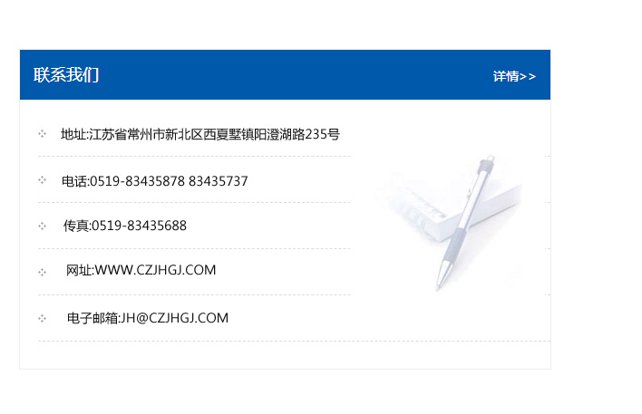 地址:常州市新北區友邦商務大廈1幢16、17層  電話:0519-85101652  傳真:0519-85112595  郵編:213022  網址:www.cz-jiayue_cn.chgrc.com  郵箱:xiajifengaa@163.com
